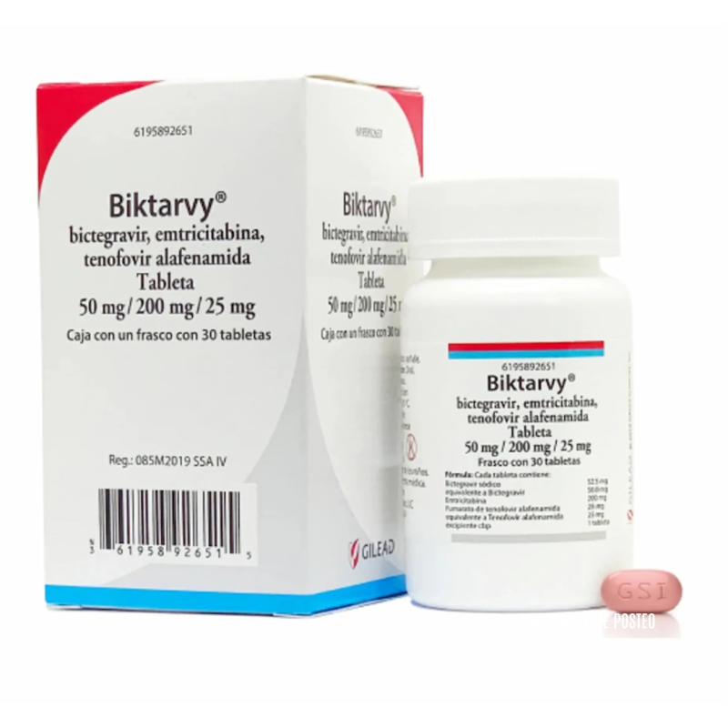 • Biktarvy Bictegravir Emtricitabina Tenofovir 50 mg / 200 mg / 25 mg 30 tabletas