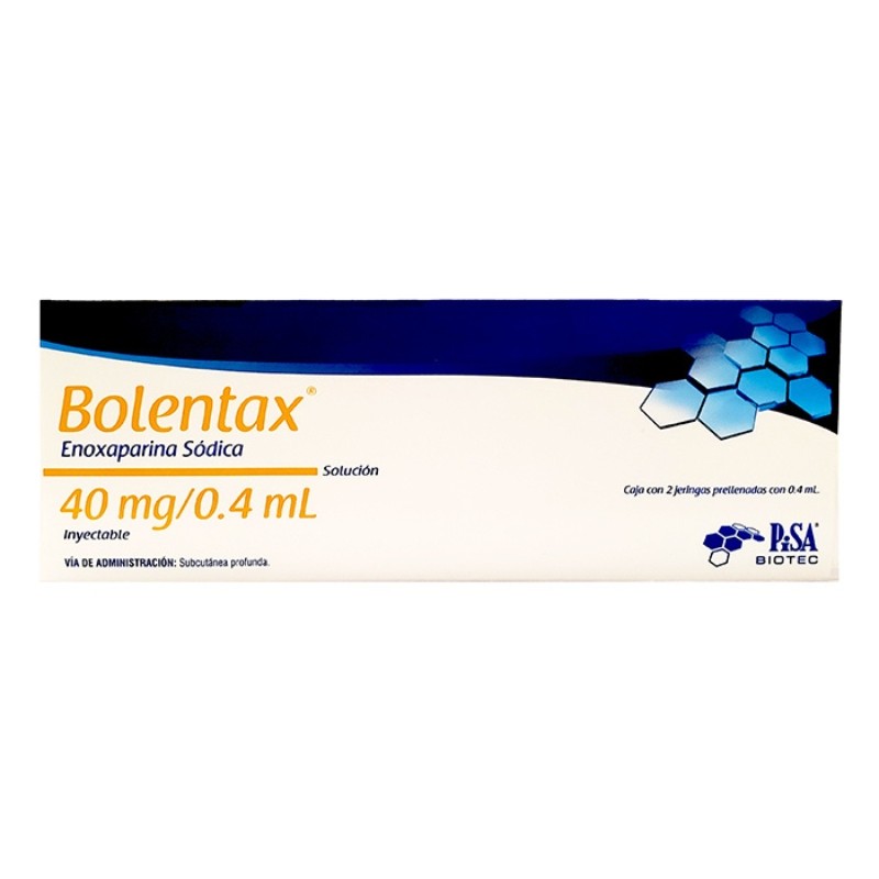 BOLENTAX 40 mg es un anticoagulante que contiene enoxaparina sódica, utilizado para la prevención y tratamiento de eventos trombóticos, como la trombosis venosa profunda (TVP) y la embolia pulmonar. Su acción consiste en inhibir la formación de coágulos sanguíneos al reducir la actividad de la trombina y otros factores de coagulación. Este medicamento es ideal para pacientes con riesgo de formación de coágulos o para aquellos que se someten a cirugías ortopédicas o abdominales.