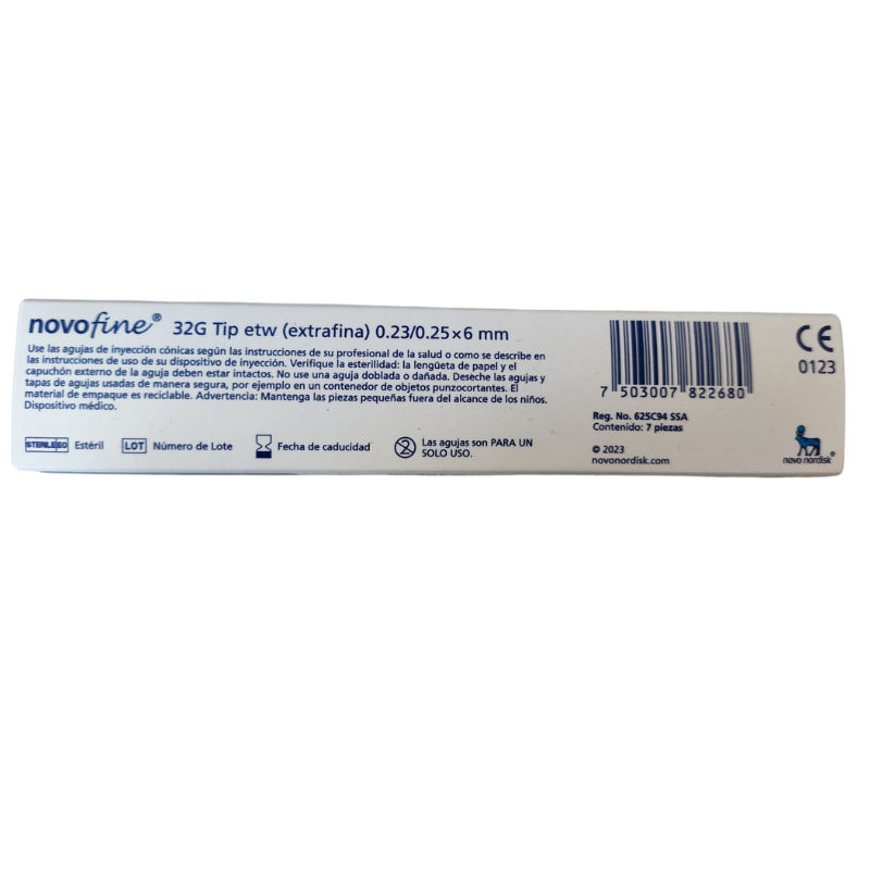 NOVOFINE 32G es una aguja ultrafina y de alta calidad, diseñada para ofrecer una inyección cómoda, segura y prácticamente indolora en pacientes con diabetes u otras condiciones que requieren administración subcutánea. Gracias a su diseño de punta biselada y tecnología de pared delgada, permite una inserción suave y un flujo de insulina más eficiente.